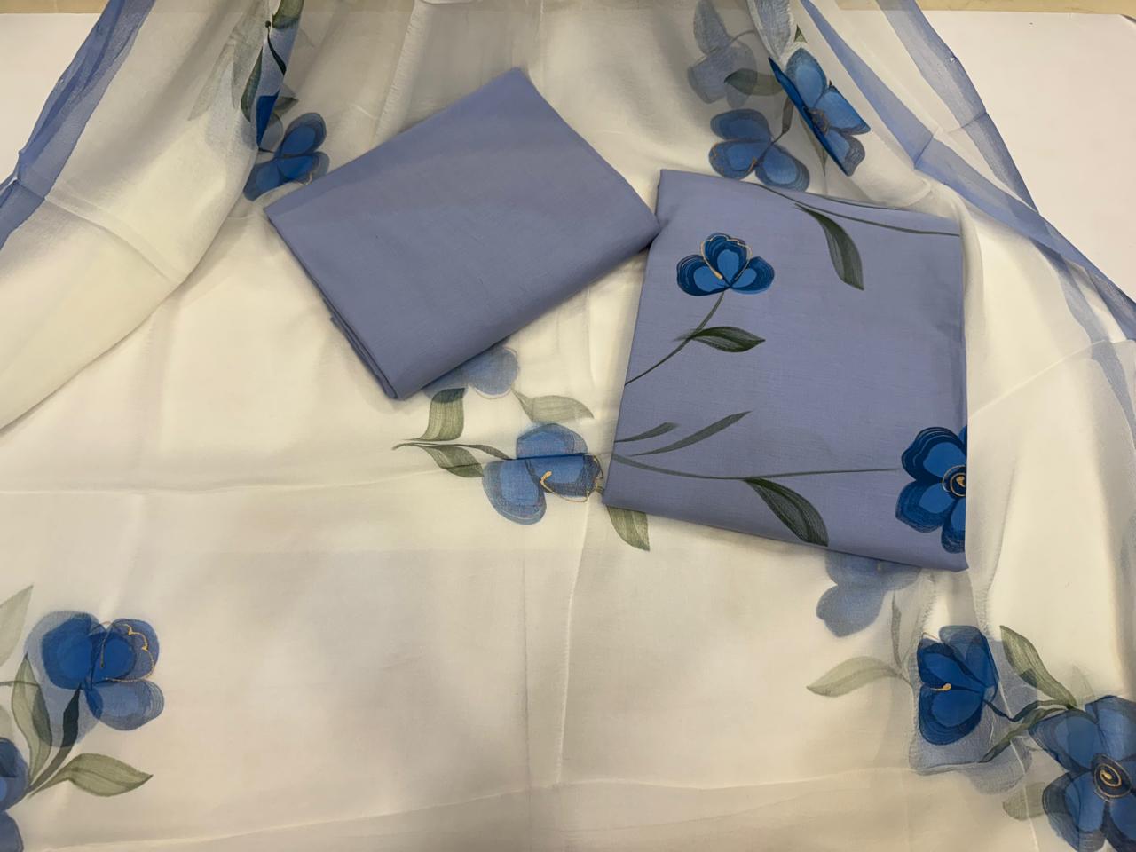 Hand Brush Painted Cotton Suit with Chiffon Dupatta