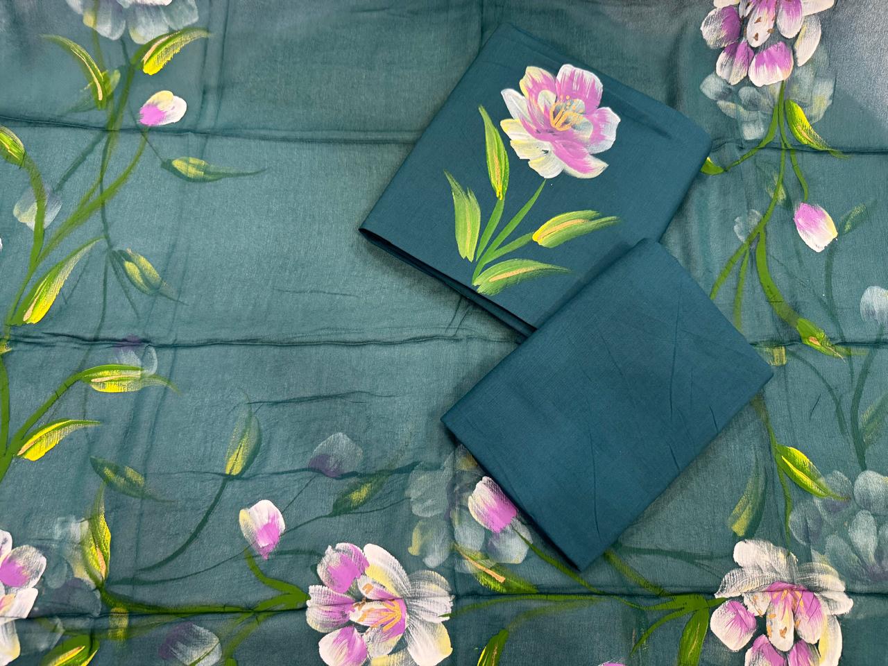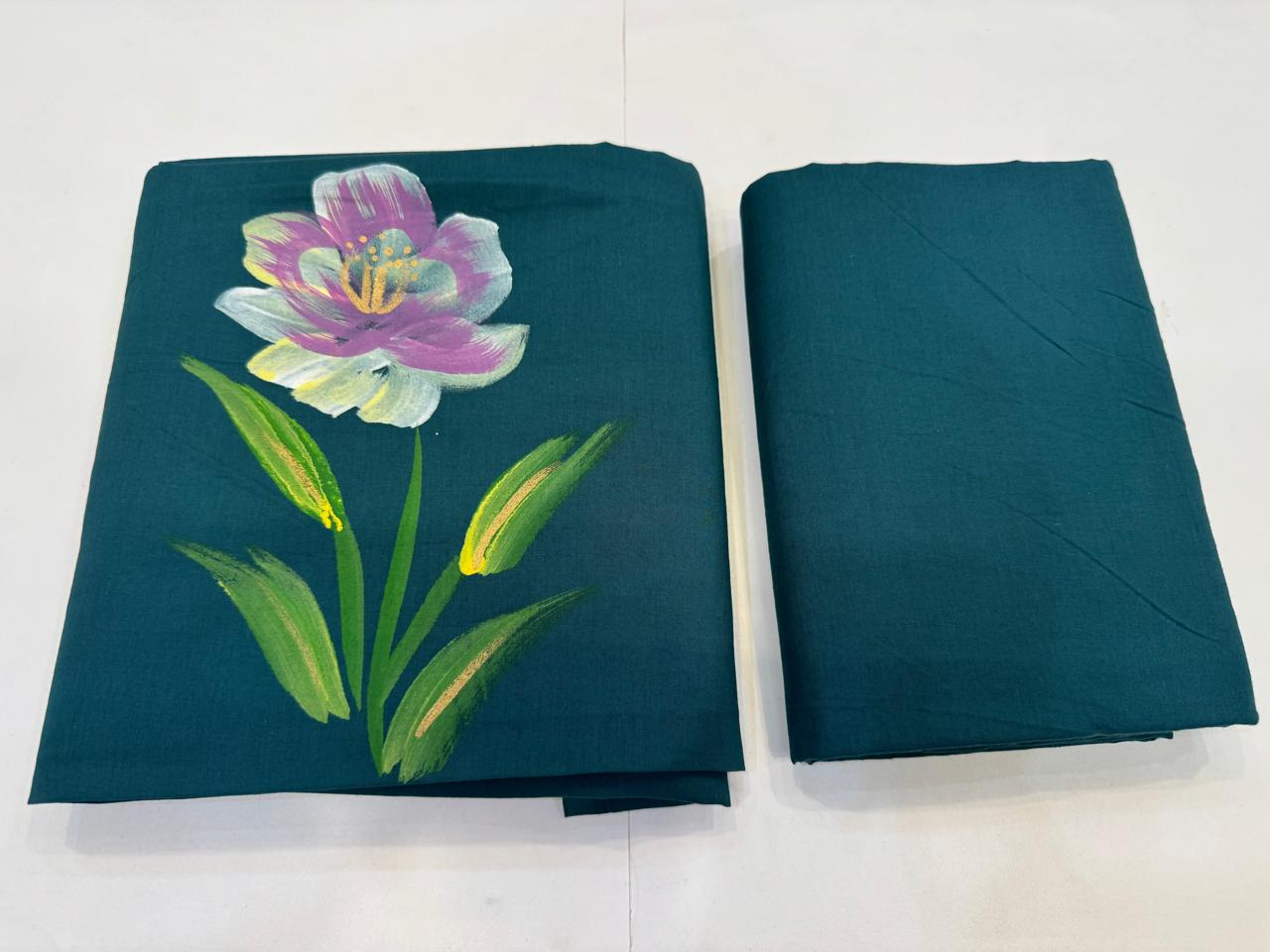 Hand Brush Painted Cotton Suit with Chiffon Duppata