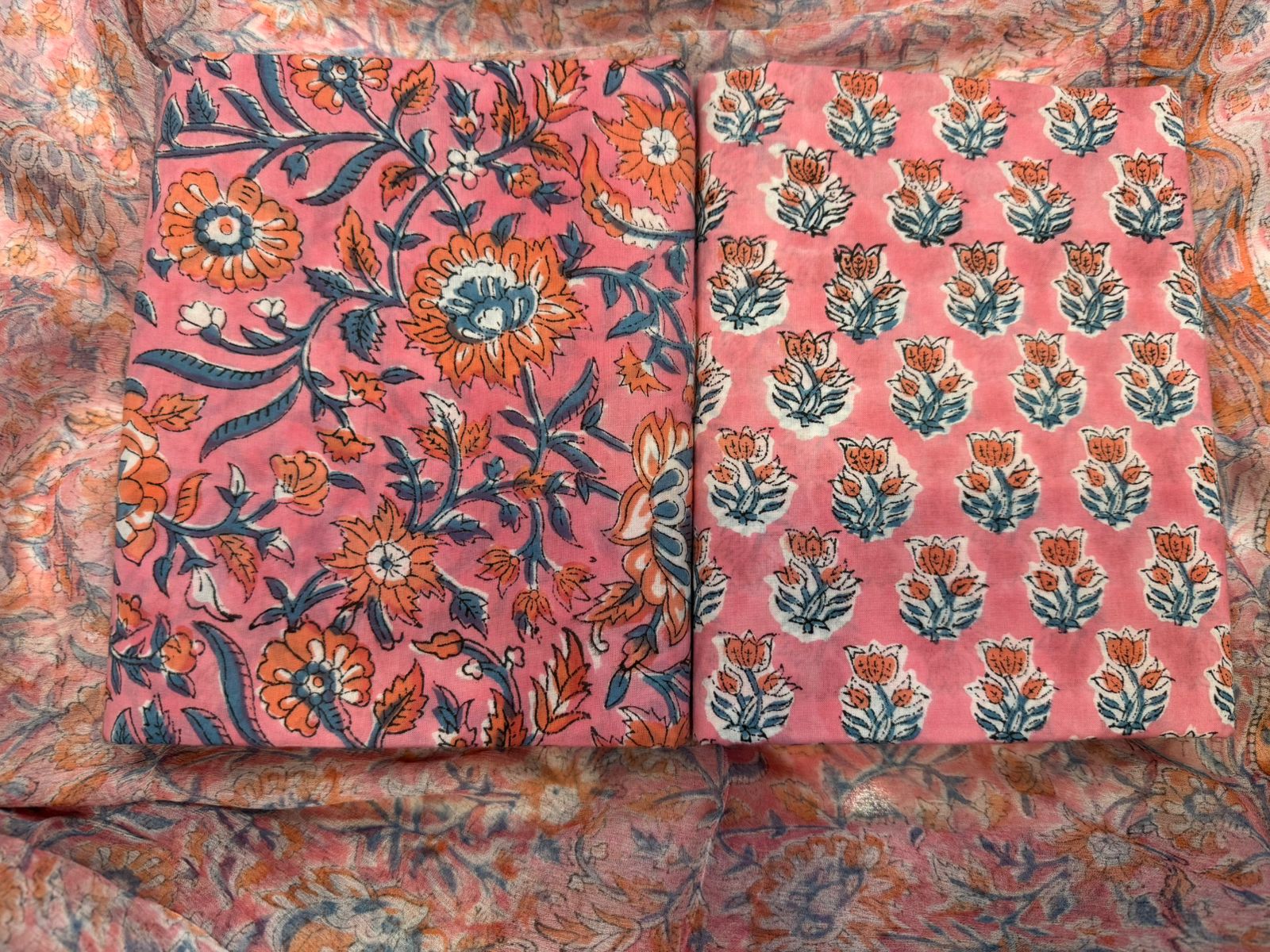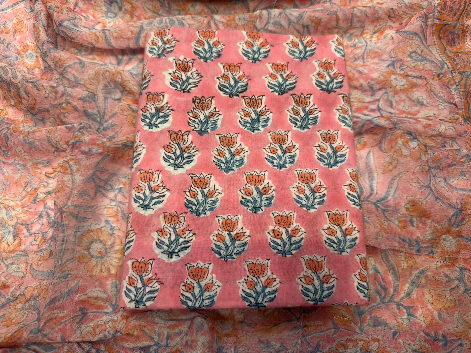 Hand Block Printed Cotton Suit with Chiffon Dupatta
