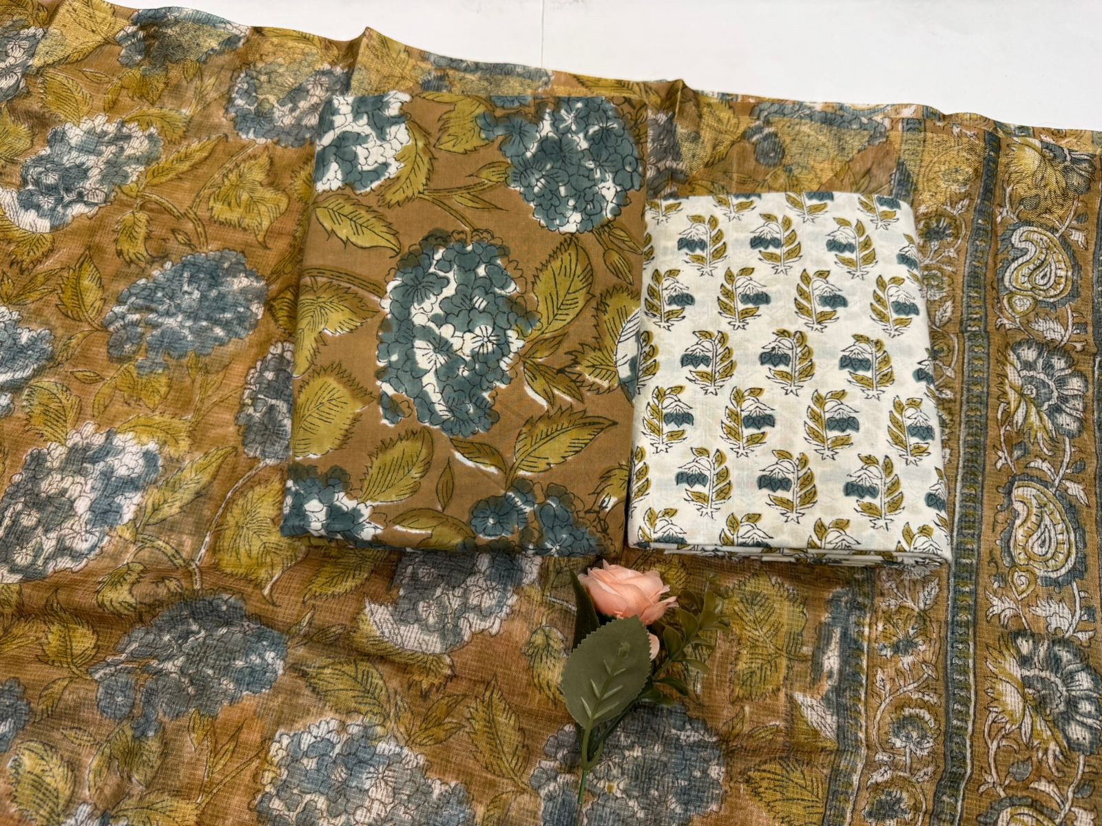 Hand Block Printed Cotton Suit with Kota Doriya Dupatta