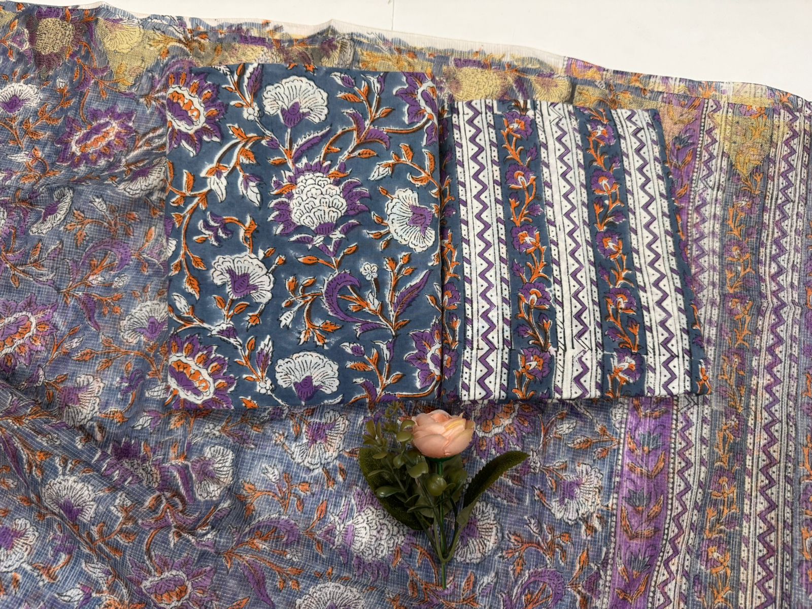 Hand Block Printed Cotton Suit with Kota Doriya Dupatta
