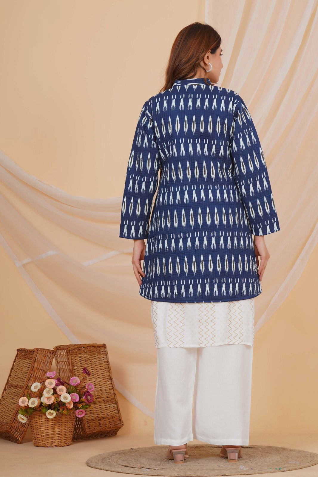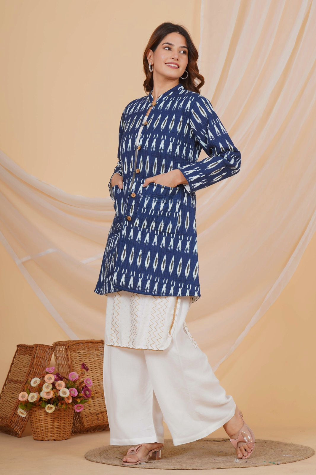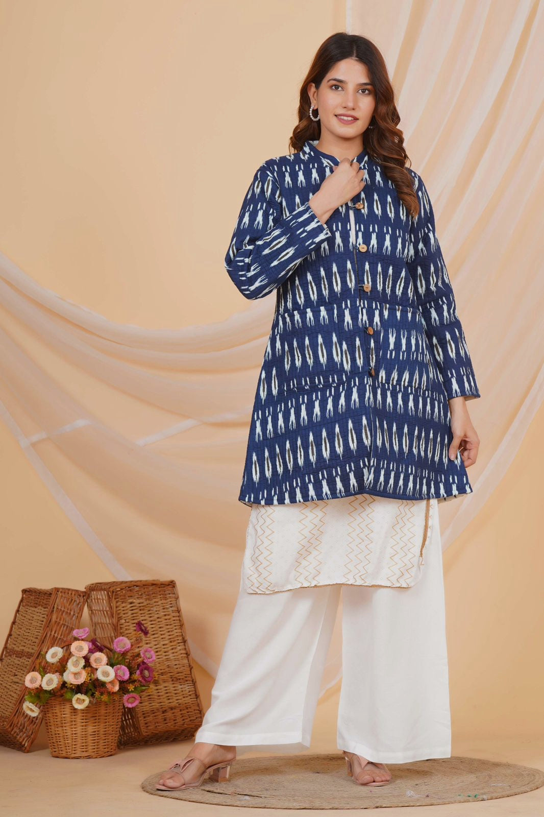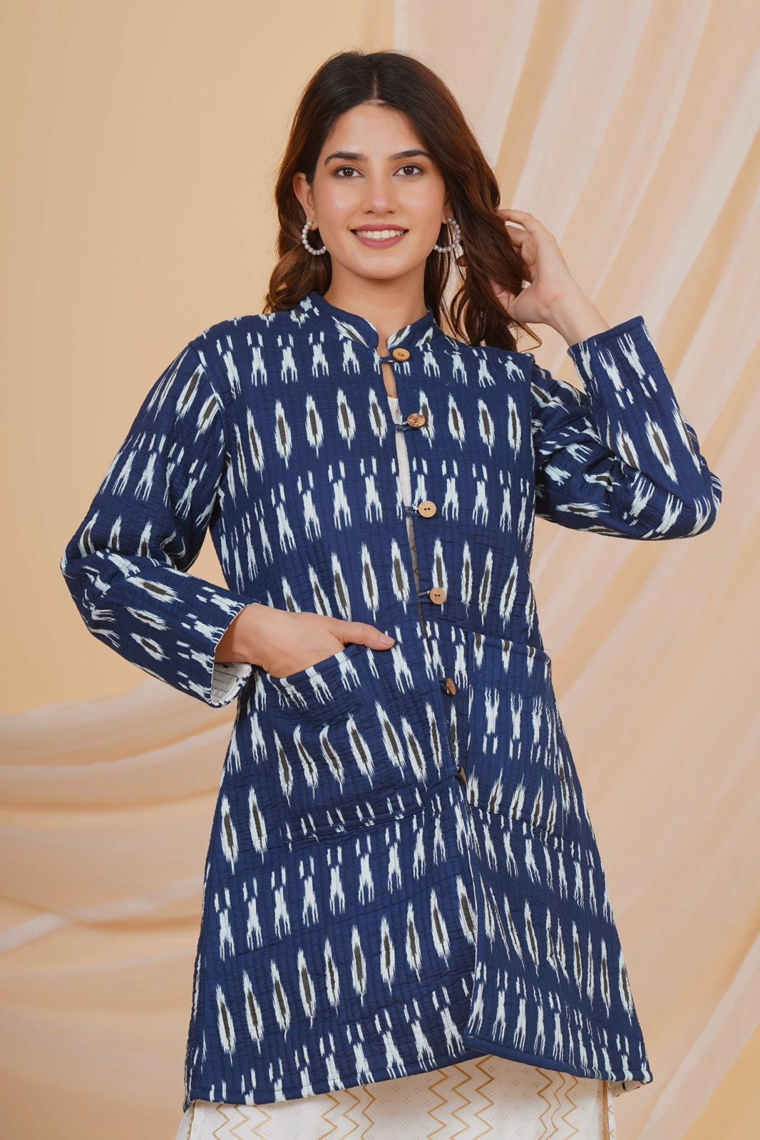 Cotton Quilted Reversible Full Sleeves Long Jacket with Mayo Collar