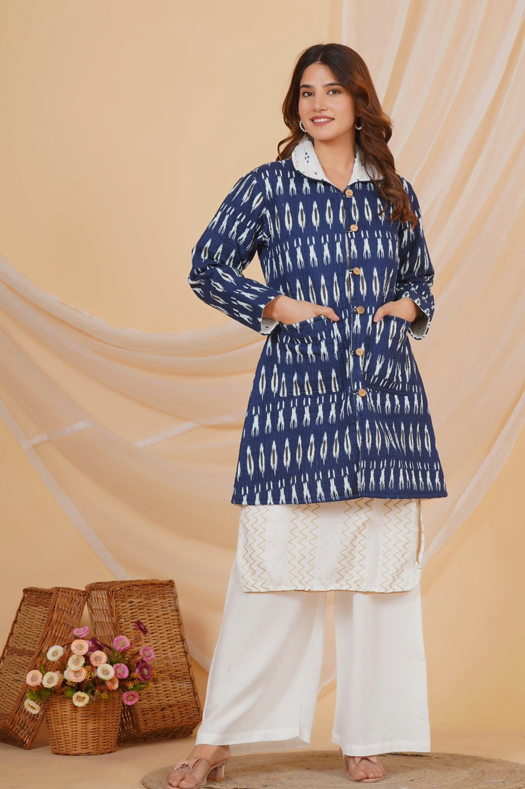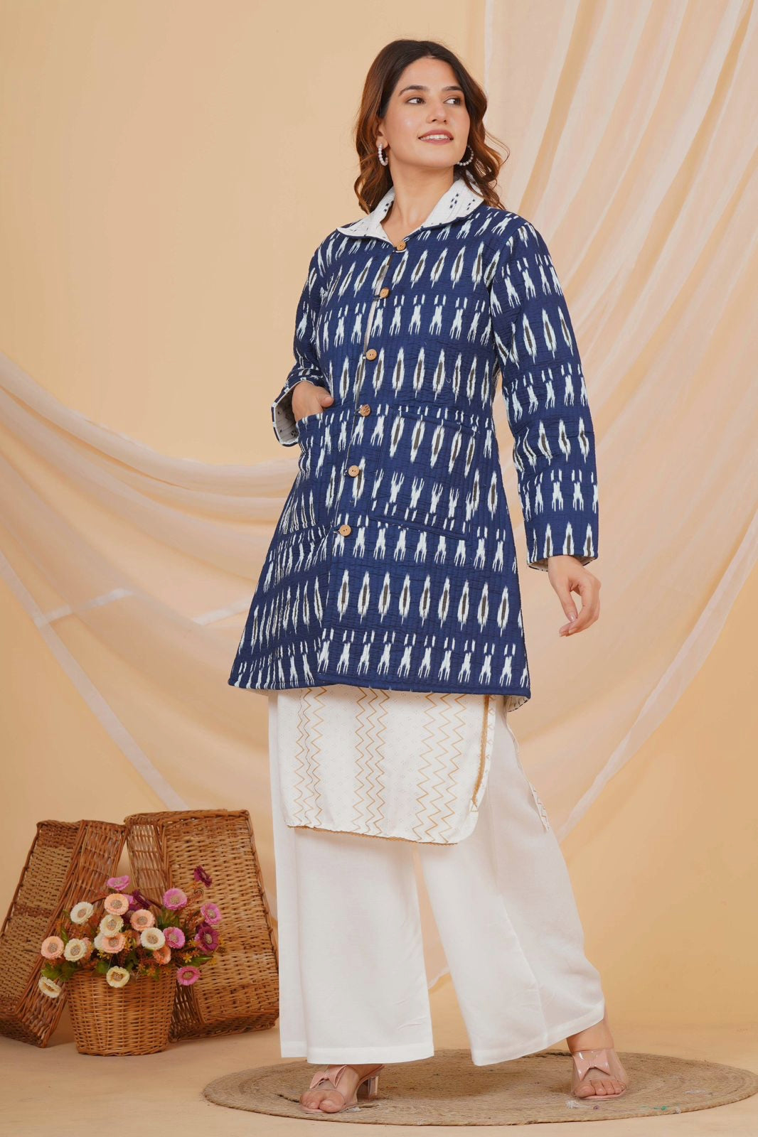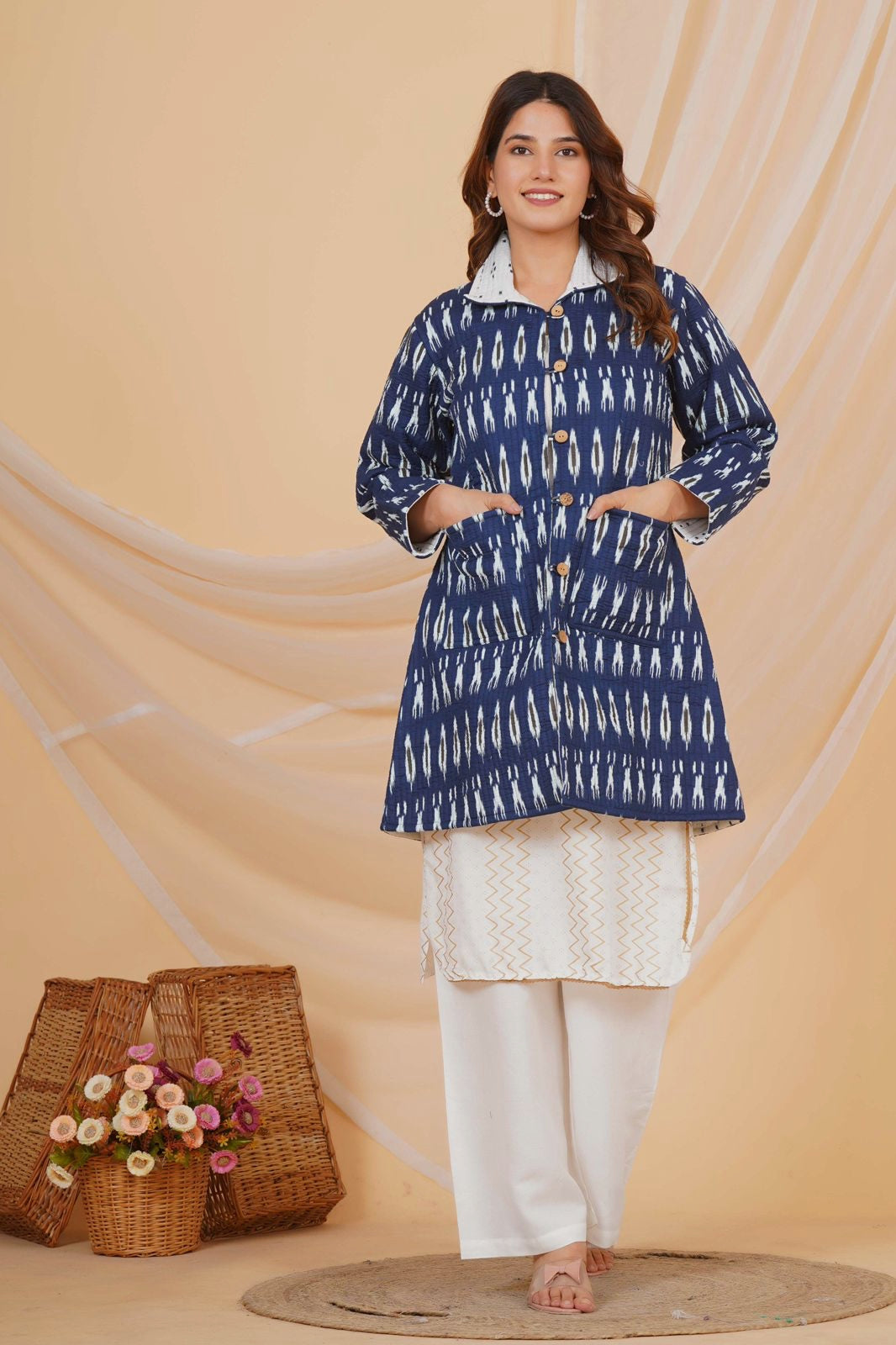 Cotton Quilted Reversible Full Sleeves Long Collared Jacket