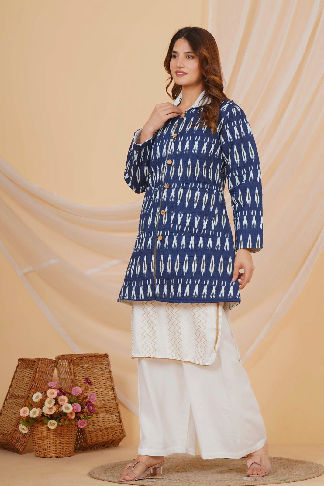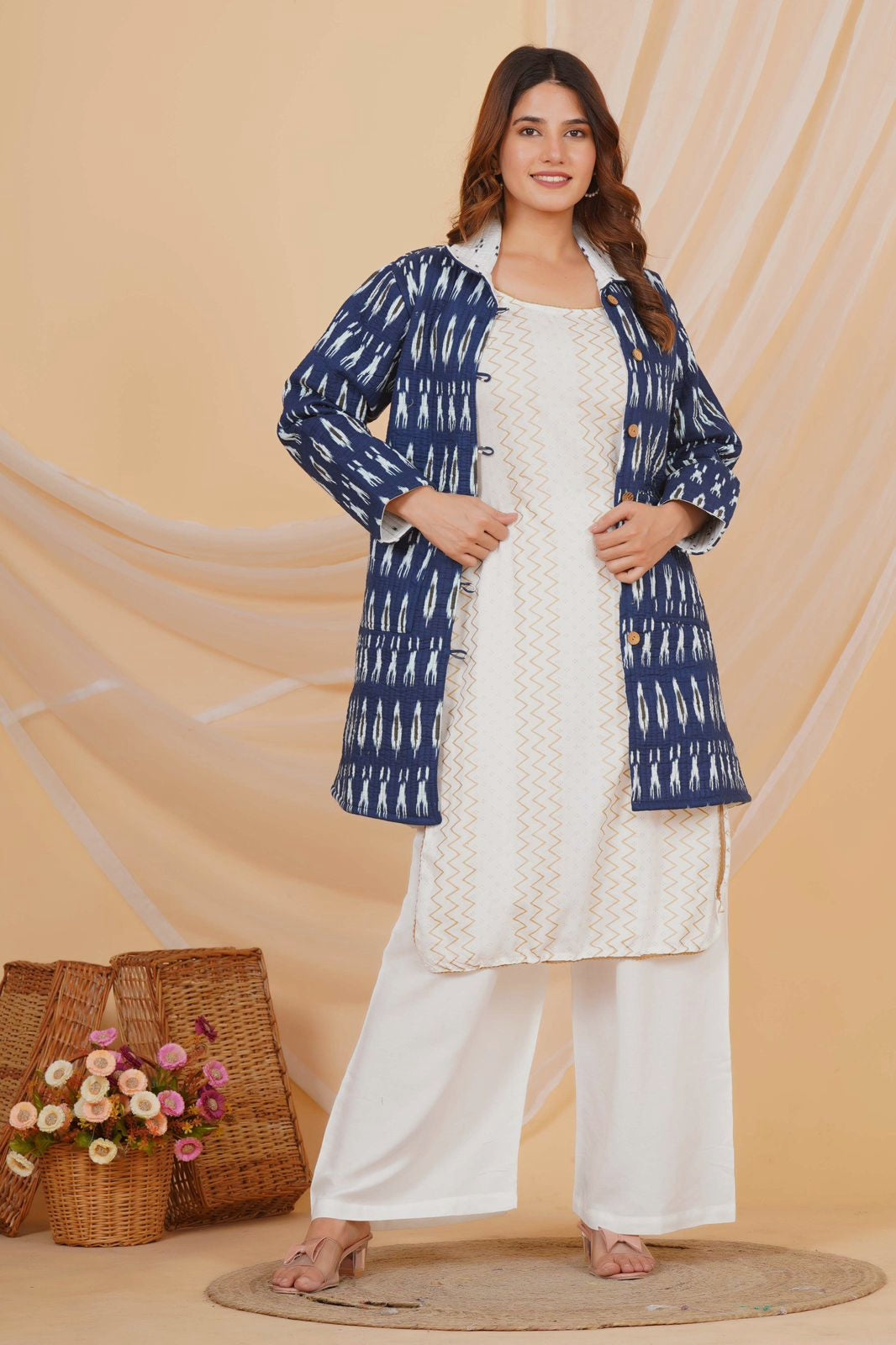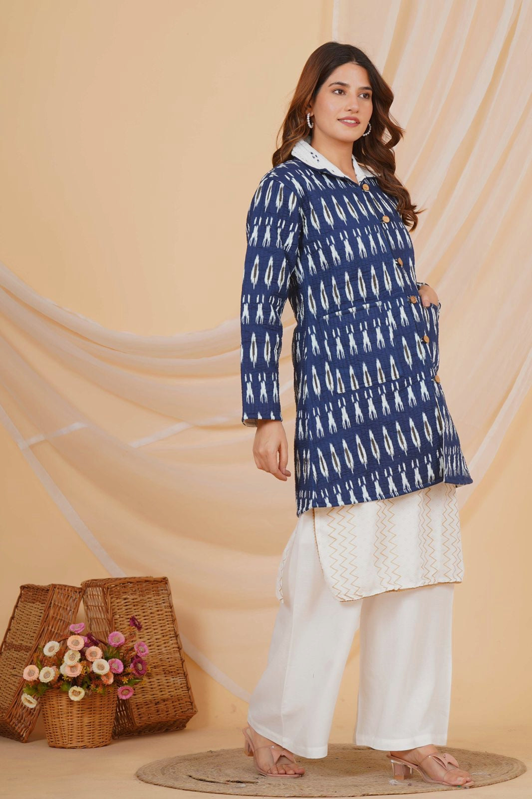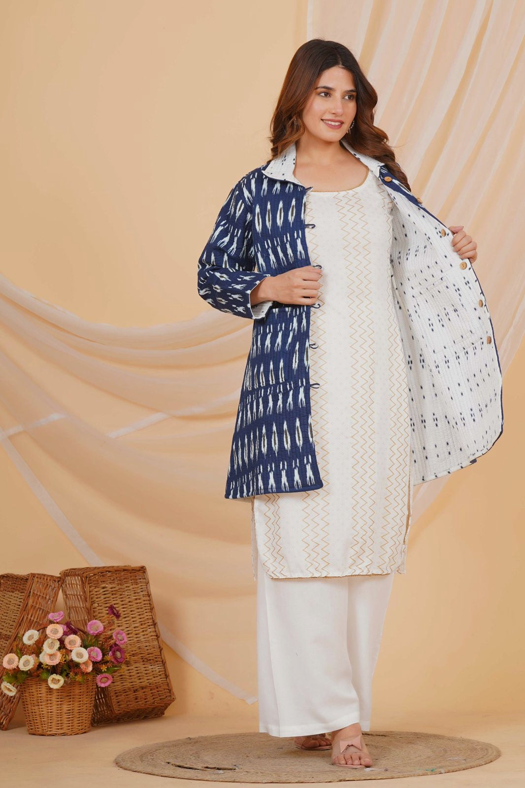 Cotton Quilted Reversible Full Sleeves Long Collared Jacket