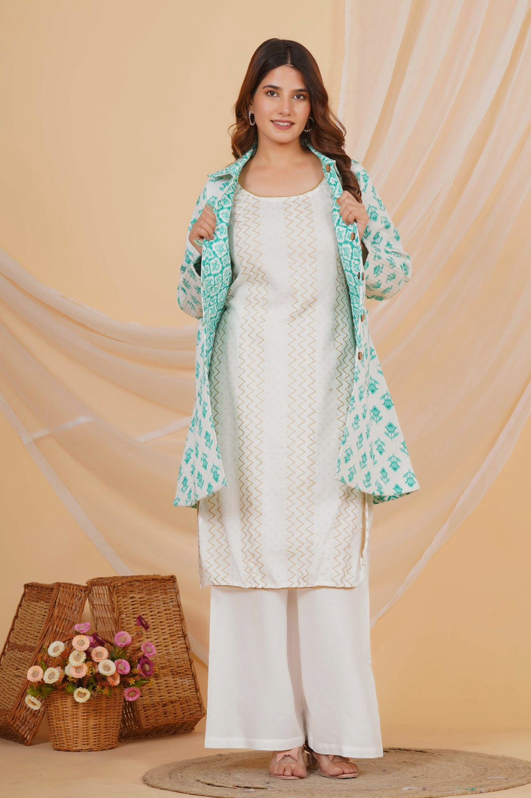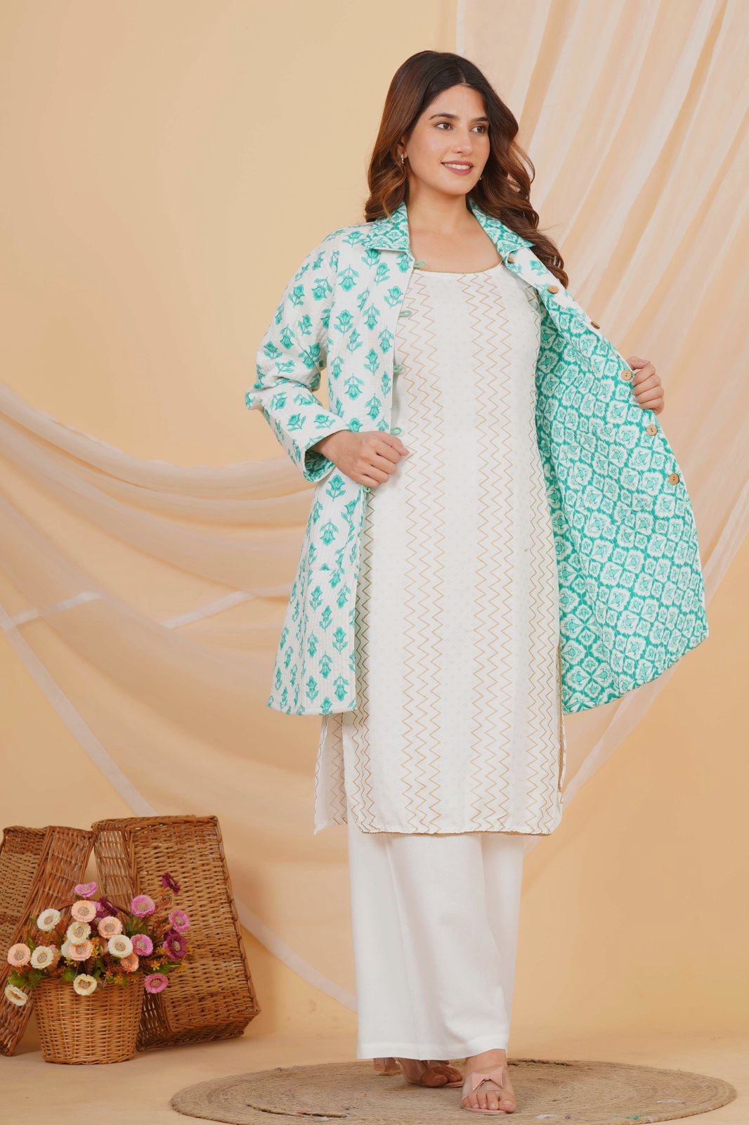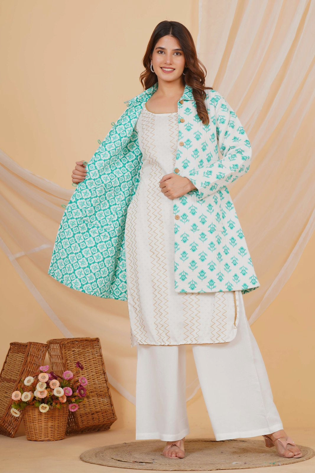 Cotton Quilted Reversible Full Sleeves Long Collared Jacket