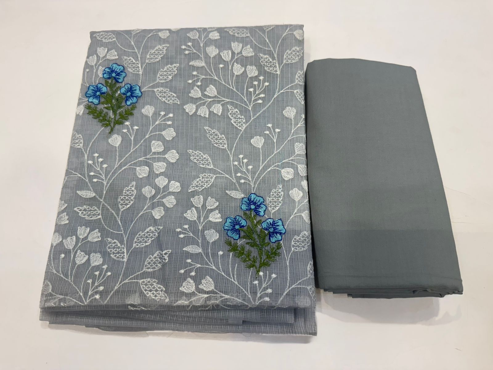 Serene Blue Fern Embroidery Kota Doriya Suit