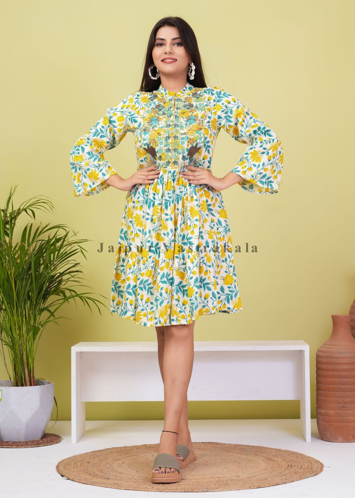 Sunlit Floral Embroidery Short Dress