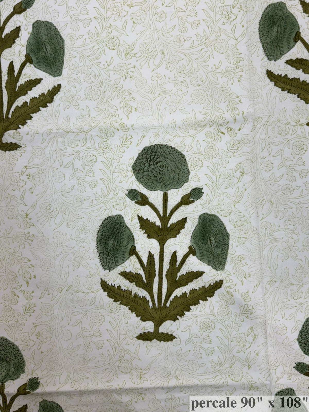 Hand Block Printed Double Bedsheet with Pillow Covers. This bedsheet is made from percale cotton, one of the finest fabrics for bed linens. It feels soft and comfortable on the skin. The fabric has a smooth matte finish with a crisp, fresh touch that gives a clean and premium feel.