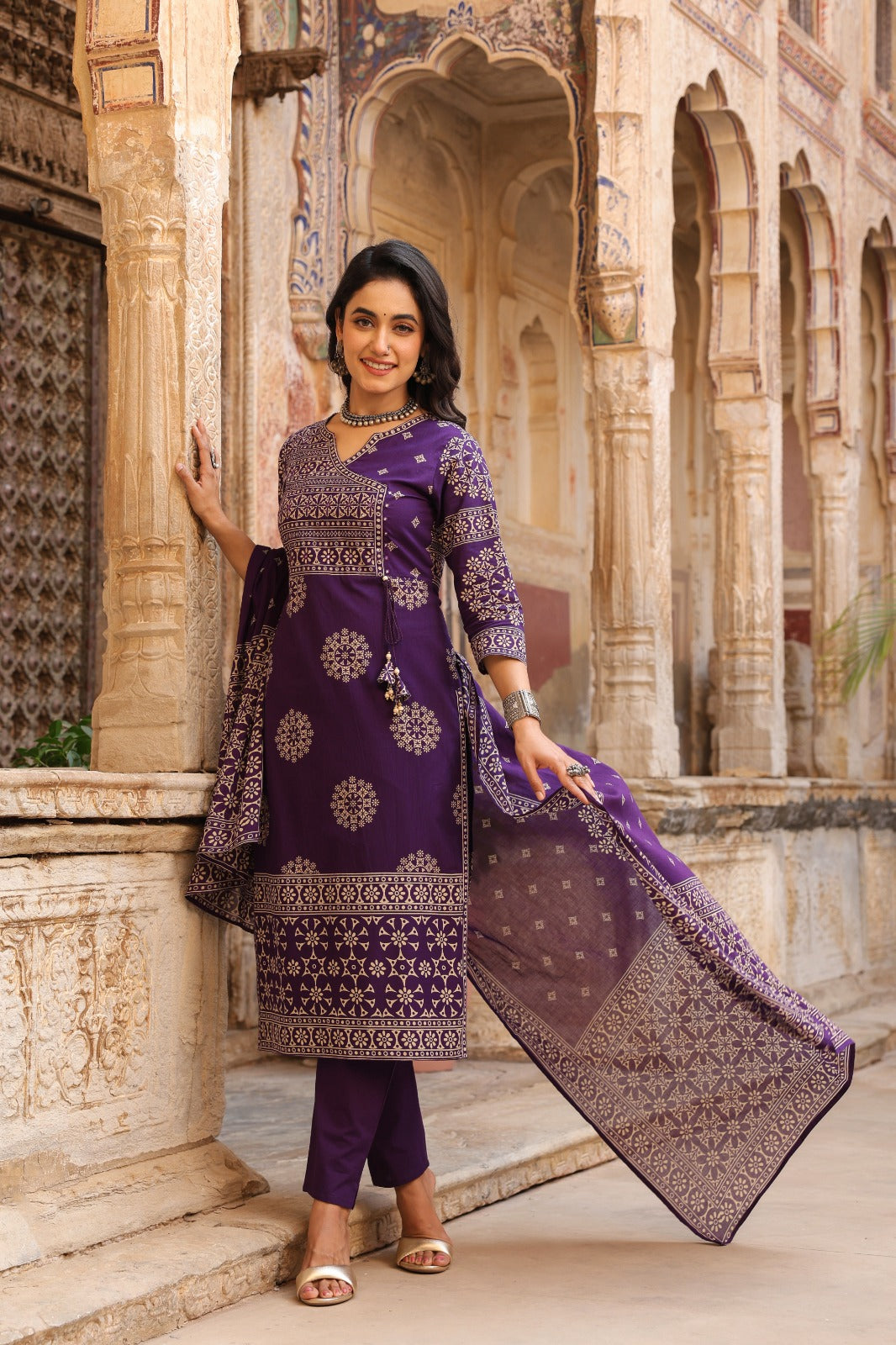 Purple Mandala Angrakha Cotton Dupatta Suit