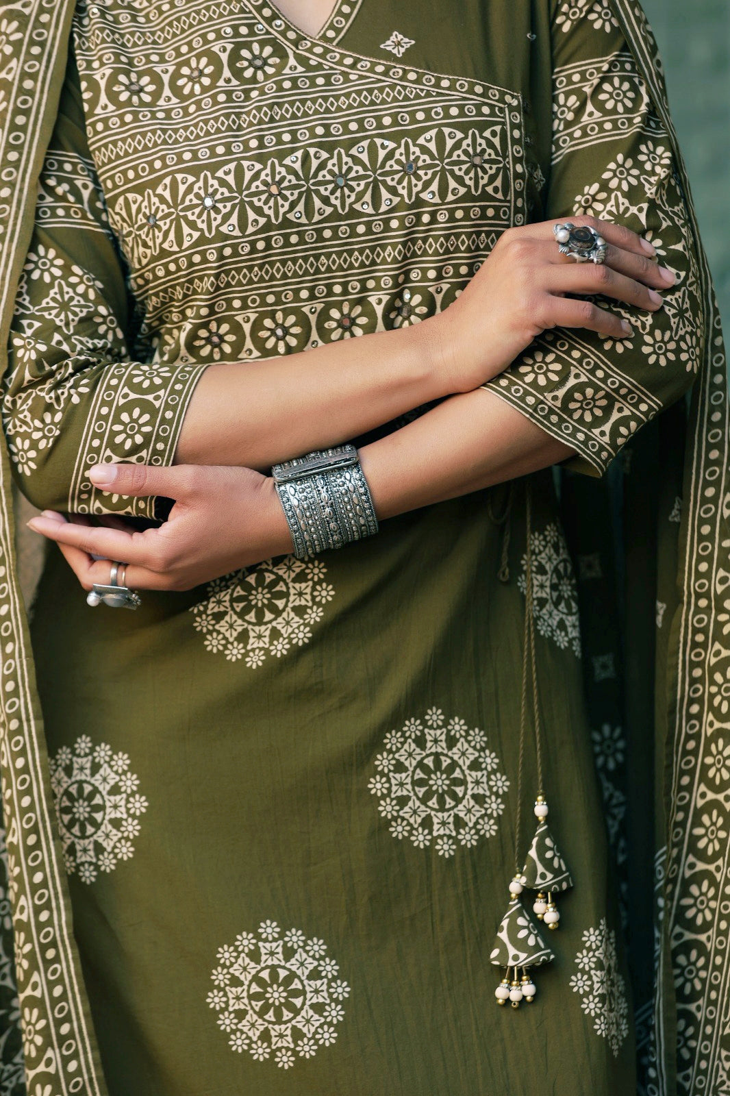 Green Mandala Angrakha Cotton Dupatta Suit