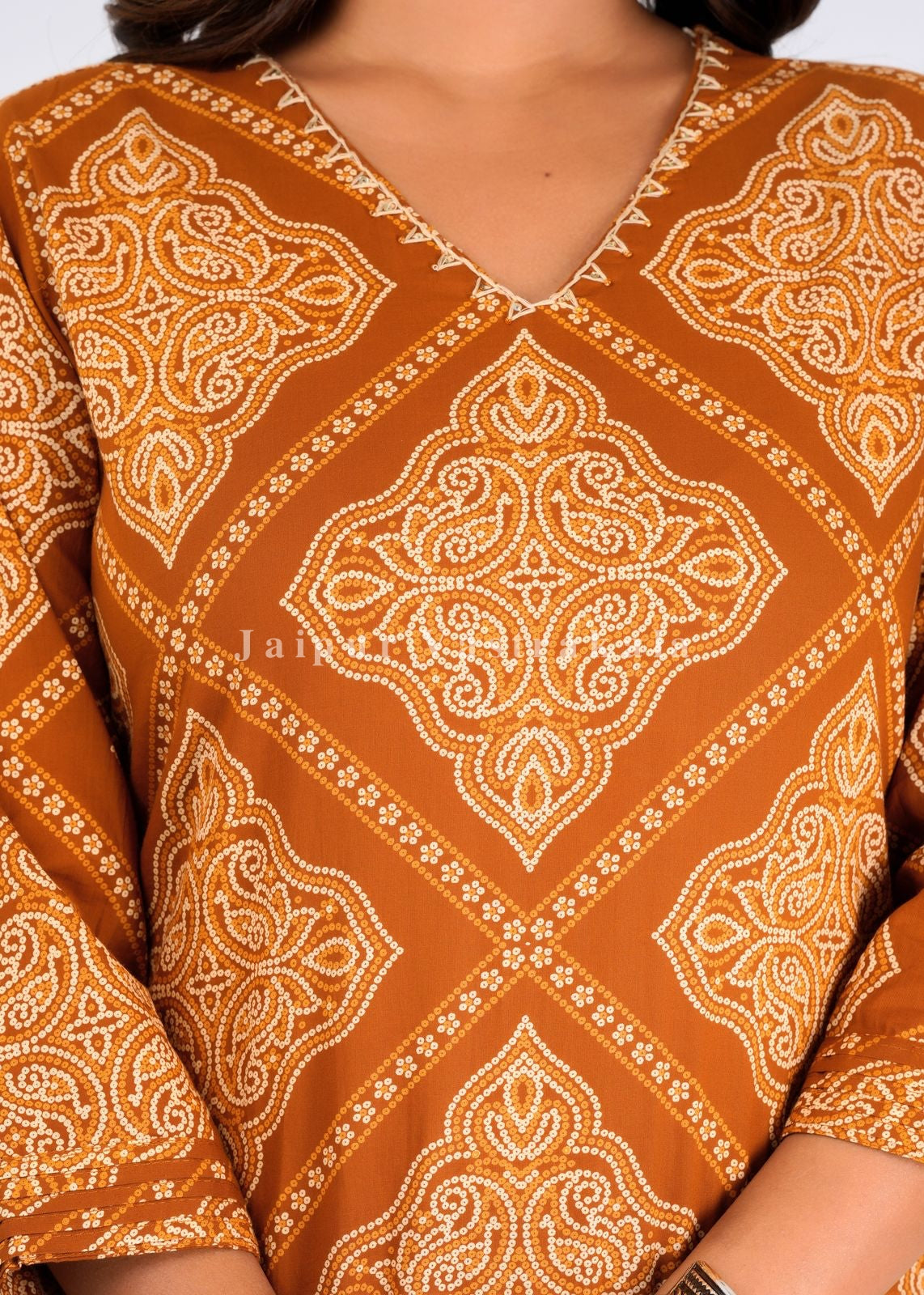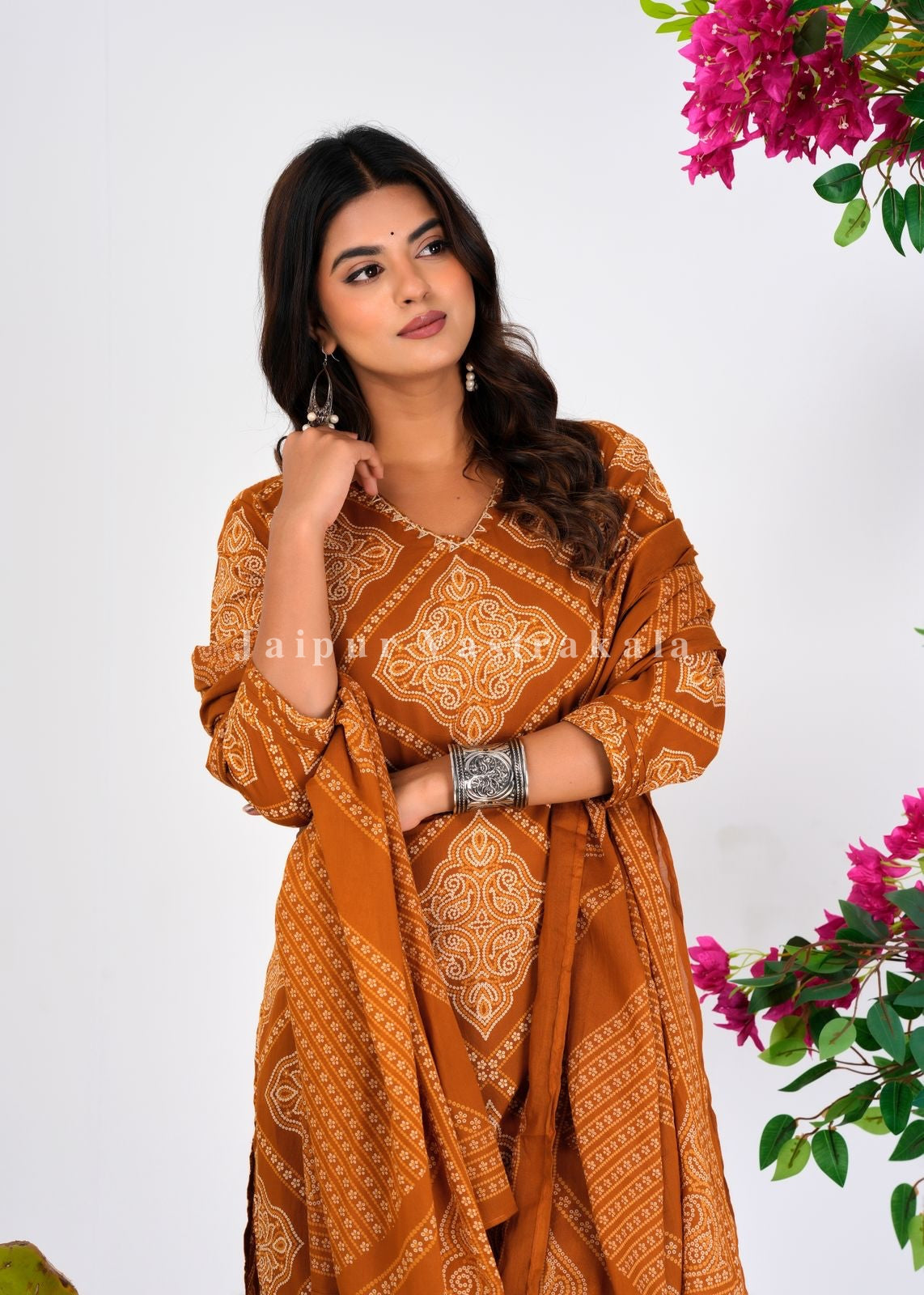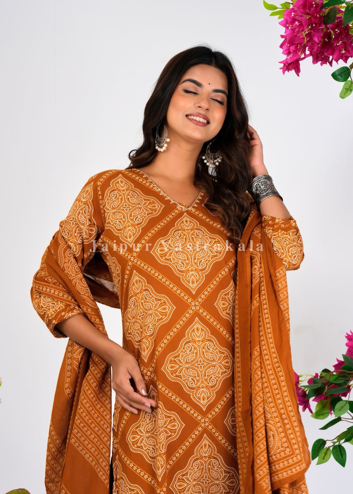 Mustard Bandhej Fusion Cotton Dupatta Set