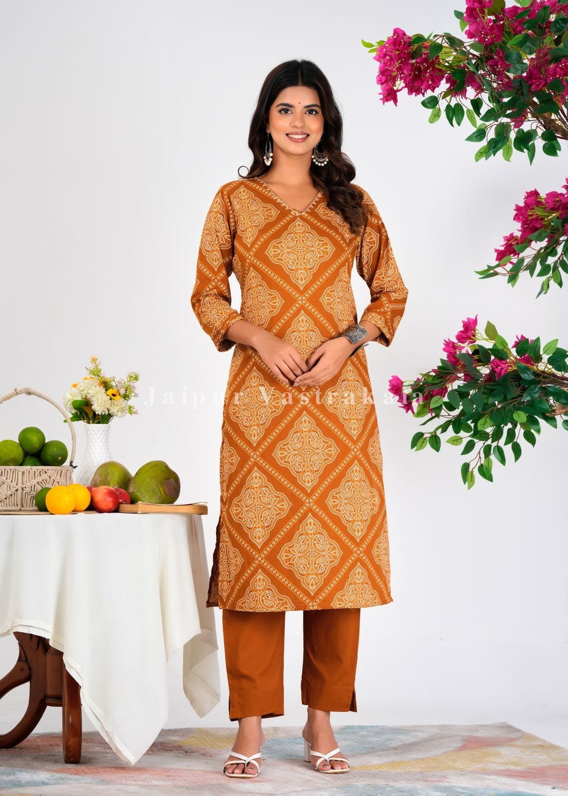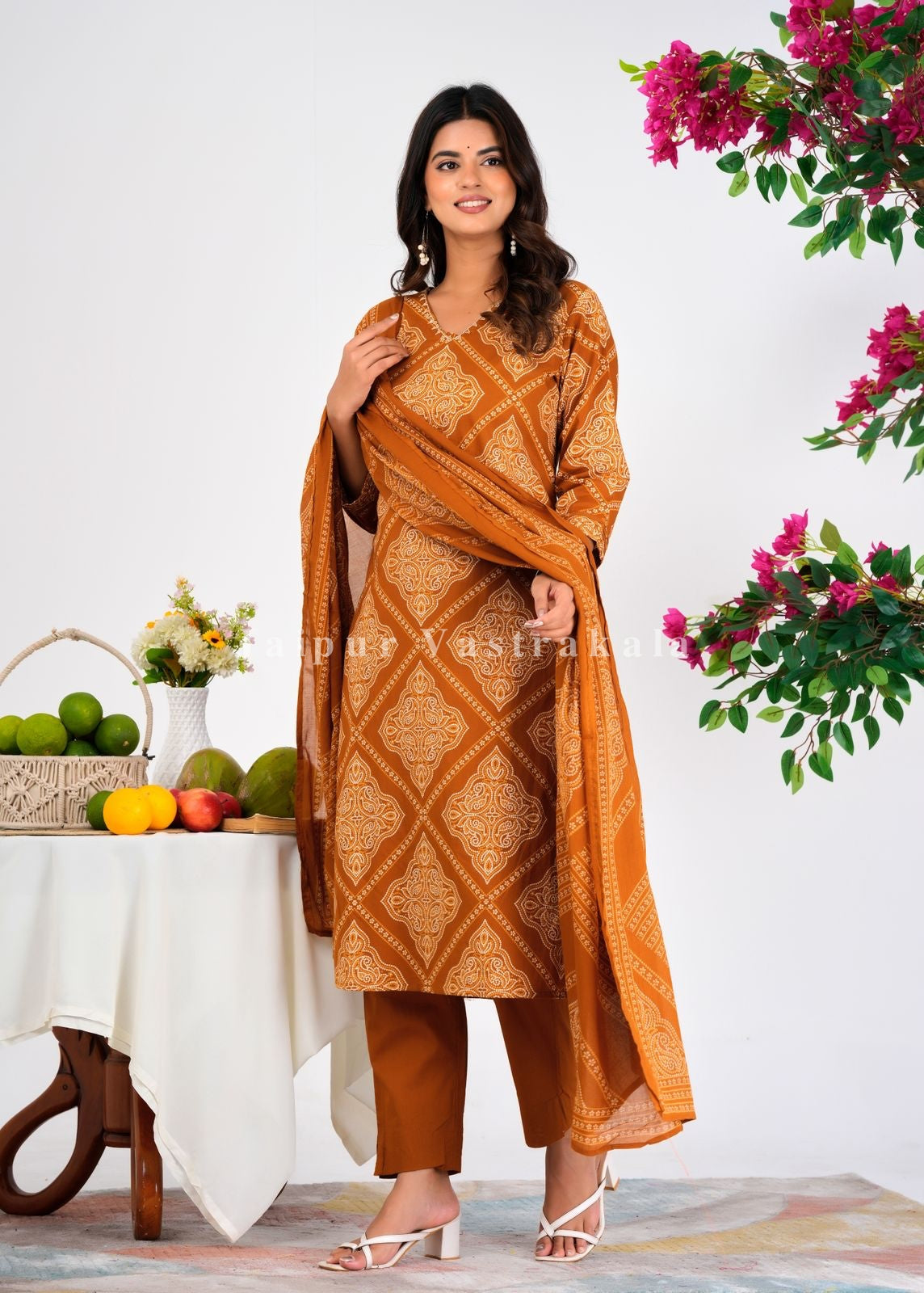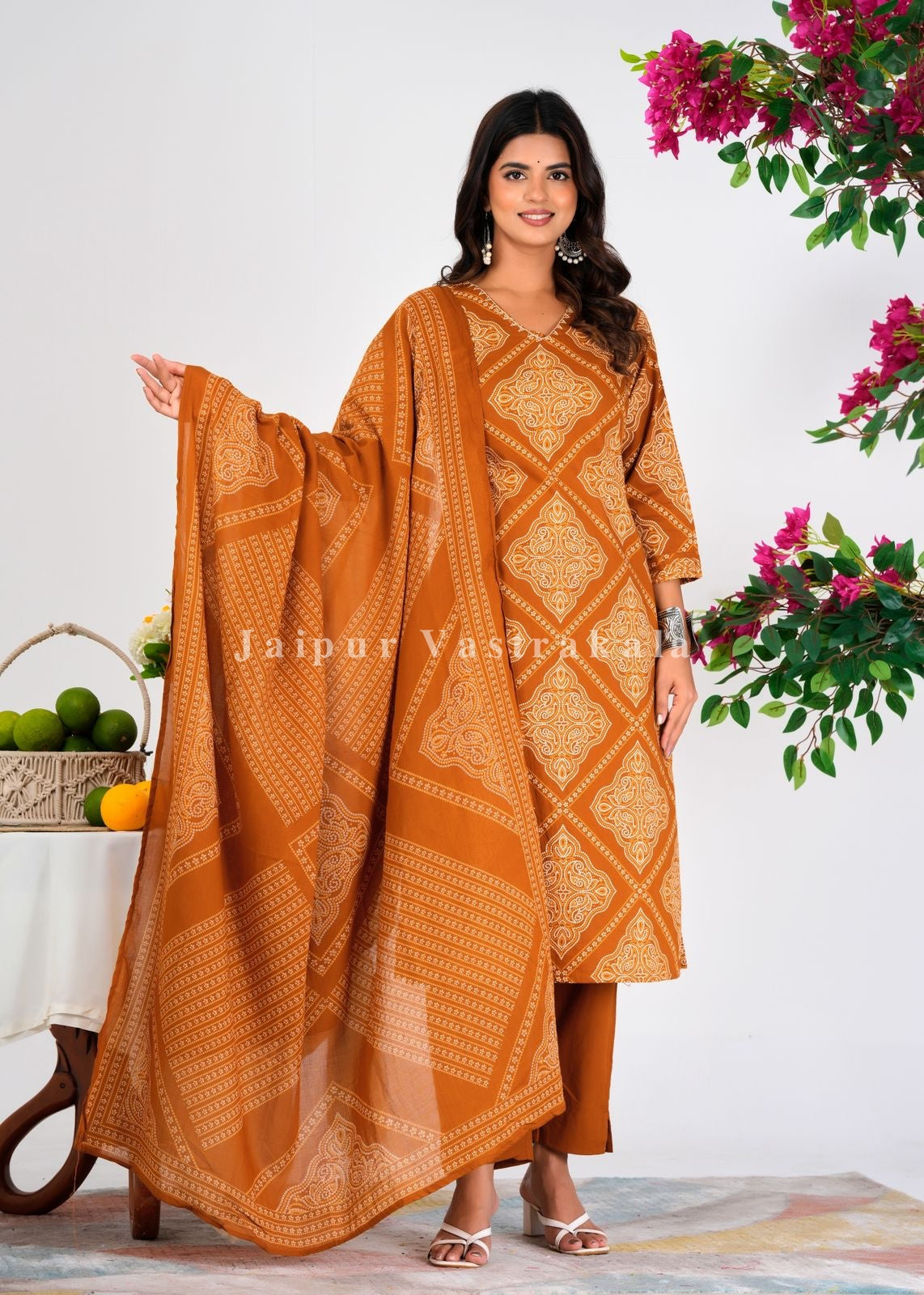 Mustard Bandhej Fusion Cotton Dupatta Set