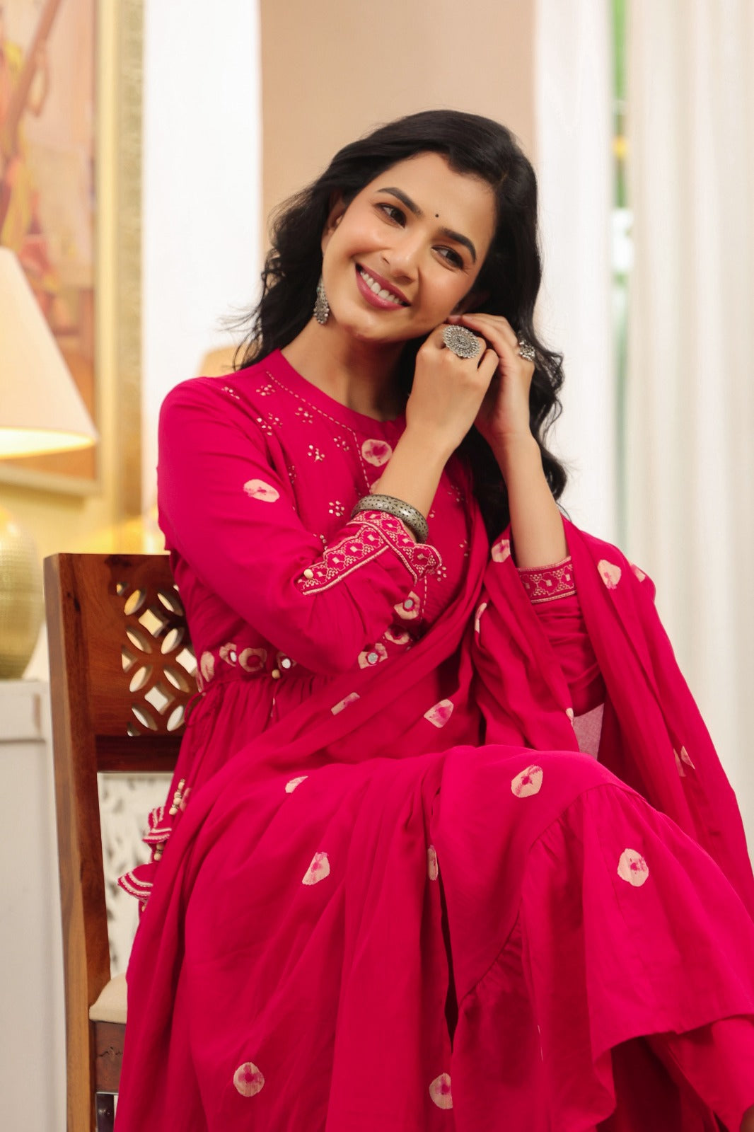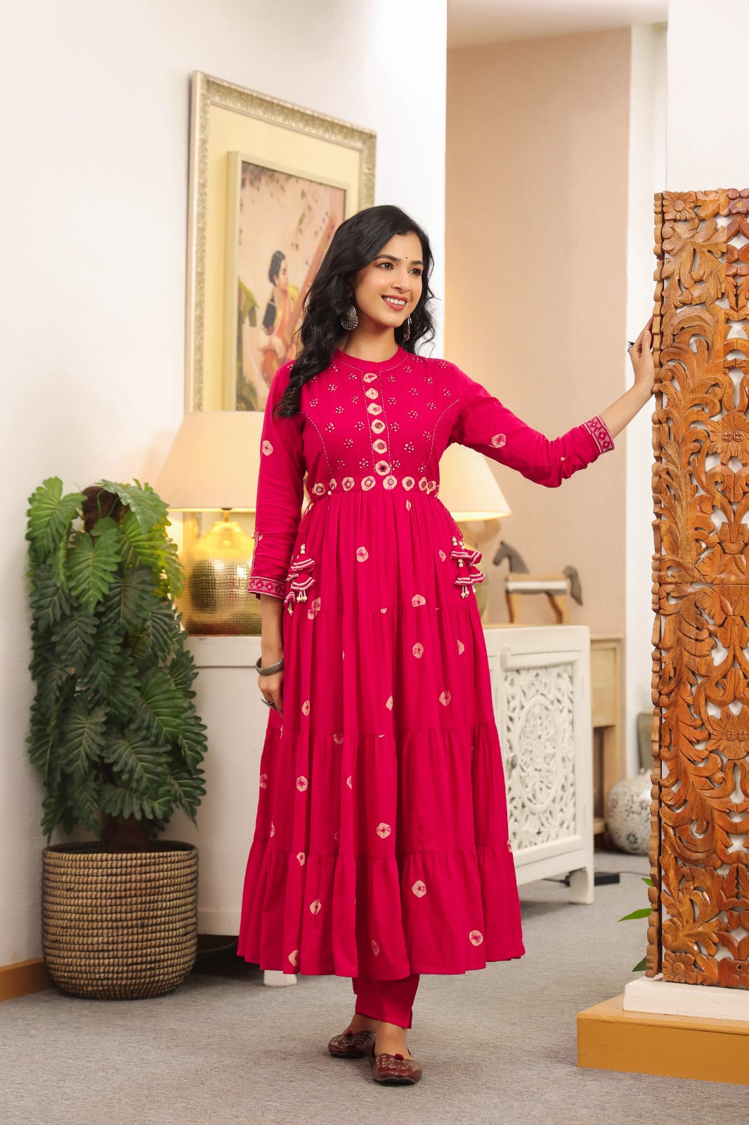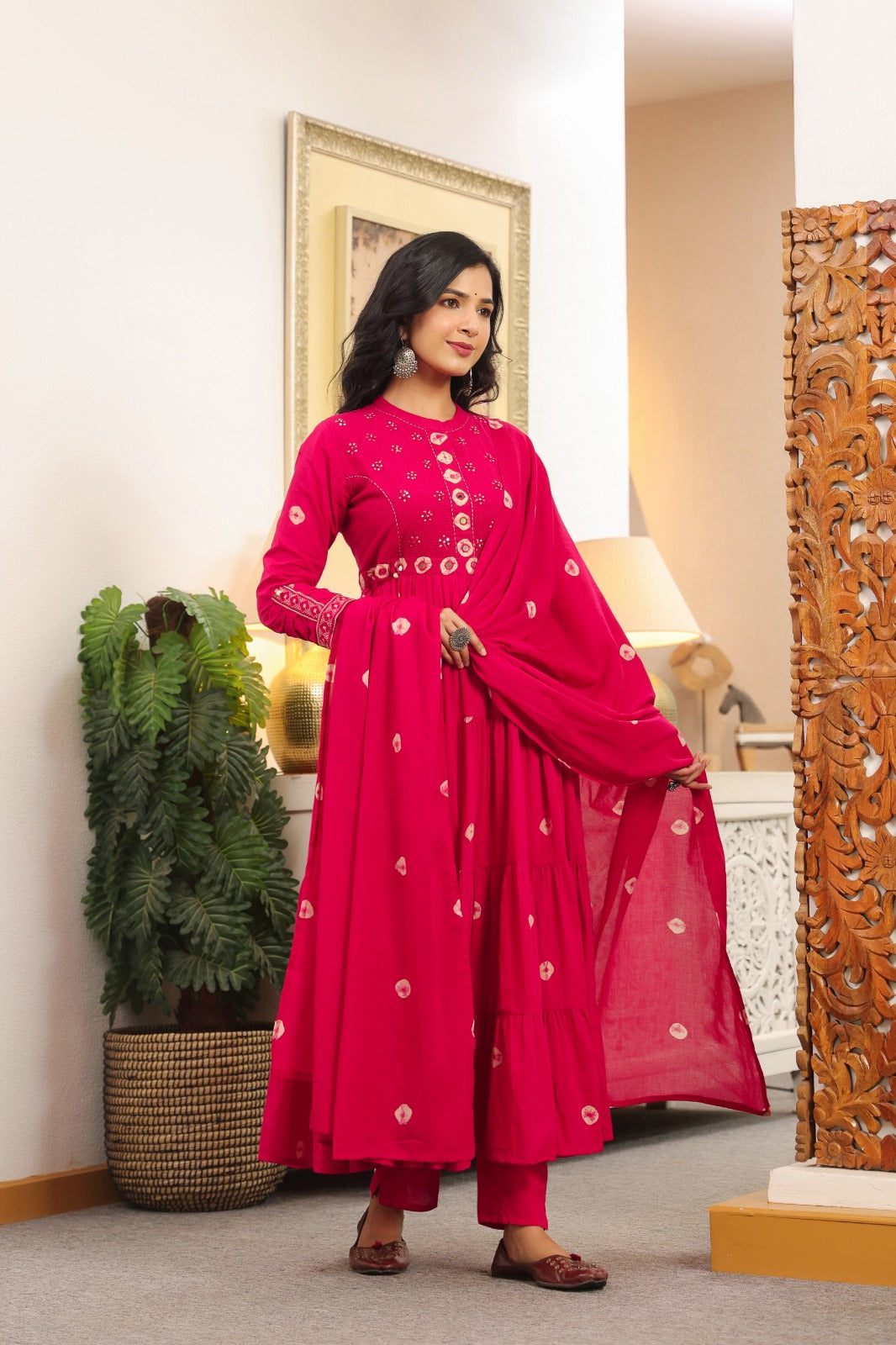 Rani Pink Fusion Mul Cotton Anarkali Suit