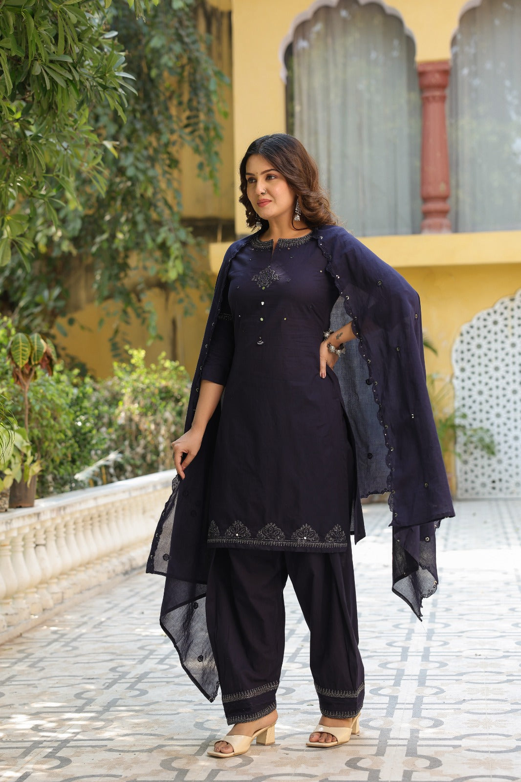 Ink Blue Farsi Salwar Cotton Suit