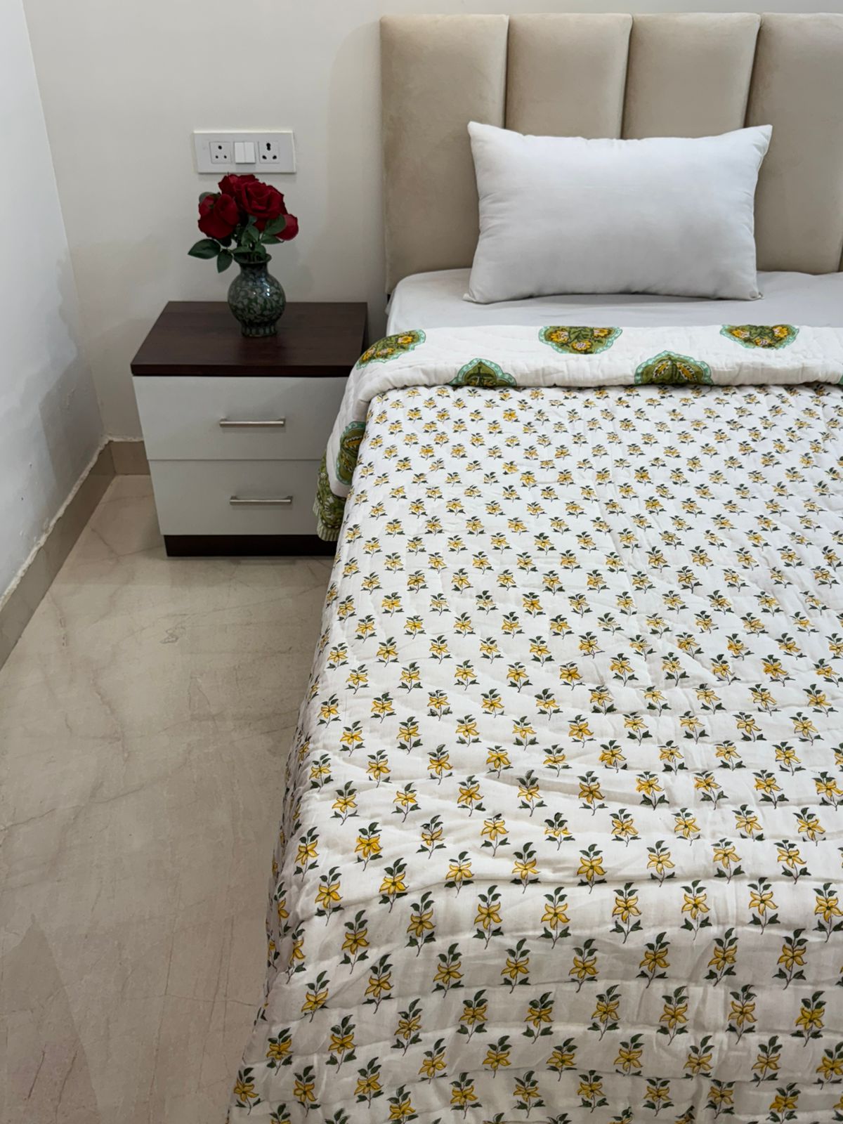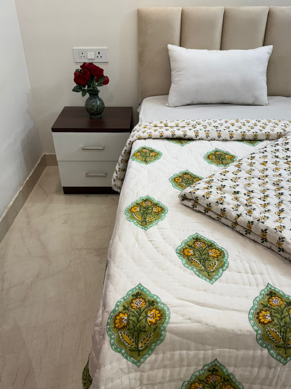 Hand Block Printed Reversible Single Bed Quilt