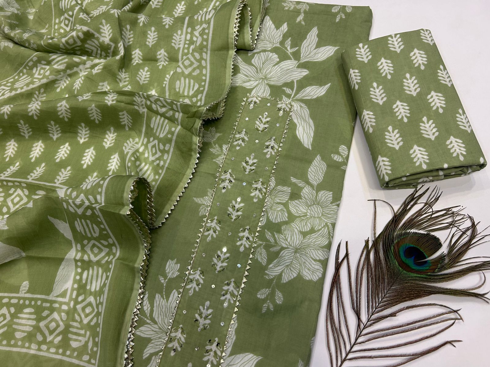 Embroidered Neck Cotton Printed Suit with Cotton Dupatta