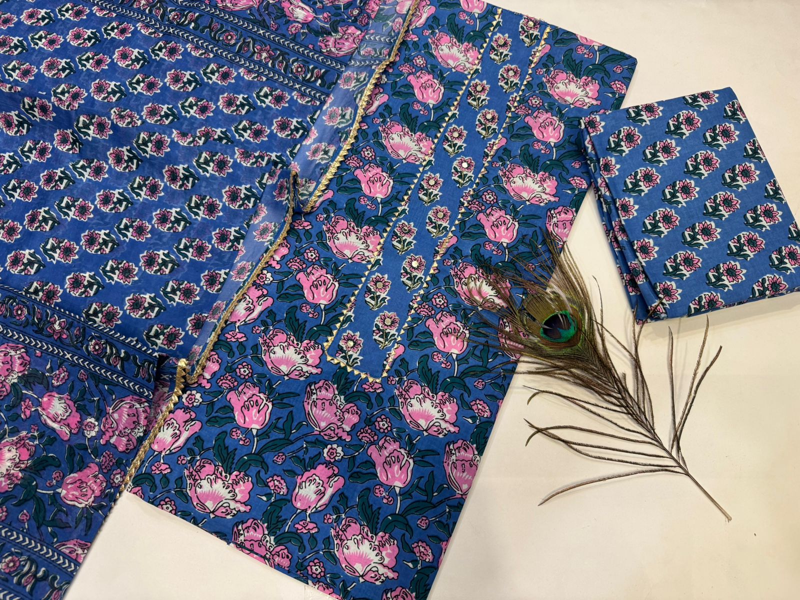 Embroidered Neck Cotton Printed Suit with Cotton Dupatta